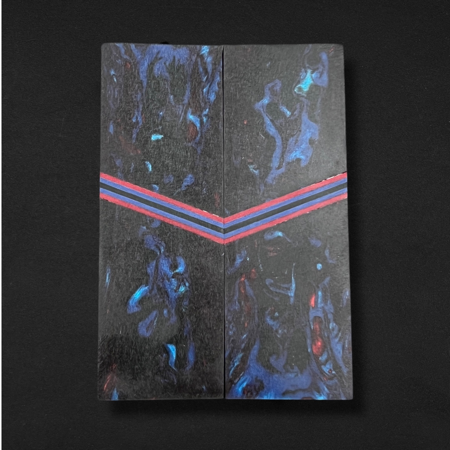 Vibrant blue merges with void-black resin, driven by a piercing crimson stripe. *Cosmic Vector* is directional and bold — engineered momentum frozen in time.