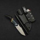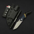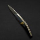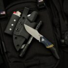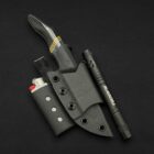 A former folder transformed into a full-tang everyday carry powerhouse. The 80CRV2 carbon-steel blade rides in a titanium frame dressed with denim micarta, canvas micarta accents, and paper-micarta liners and spacers for layered texture and urban edge. Its modular Kydex sheath is a complete EDC station—integrated lighter holder, flashlight slot, and pocket clip—built to handle everything from weekend hikes to daily city missions.