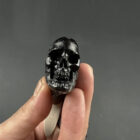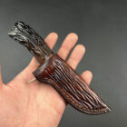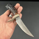 Handle: The handle is a standout feature, crafted from elk stag. It is meticulously carved with a pattern that mimics the natural, organic lines found in tree bark or roots, giving it an earthy and rugged feel. The handle is designed to be ergonomic, fitting comfortably in the hand while providing a secure grip. At the base of the handle, there is a carved skull, adding a unique and artistic touch to the overall design.