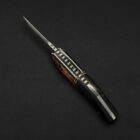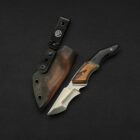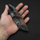 A striking everyday carry that blends sharp geometry with premium materials. The 80CRV2 carbon-steel blade is paired with a hybrid Kydex/leather sheath and pocket clip for fast, secure carry. Its handle fuses Nebula Obsidian with stabilized Buckeye burl, framed by G10 liners and brass spacers, creating a layered, high-contrast look that demands attention.