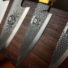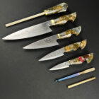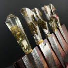 Blade surfaces are brought to life through precision engraving, designed to complement the internal complexity of the handles without overpowering them. The result is a set that feels deliberate, balanced, and quietly uncompromising — a work that rewards close inspection rather than spectacle.
